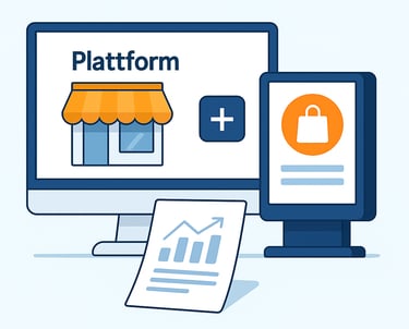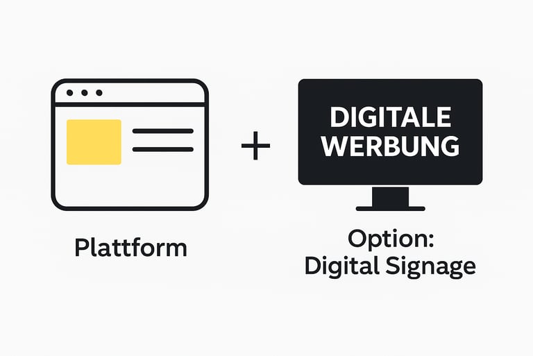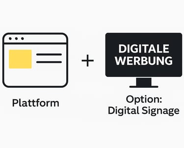 Plattform für moderne Online-Werbung mit optionaler Erweiterung über Digital-Signage-Partner.